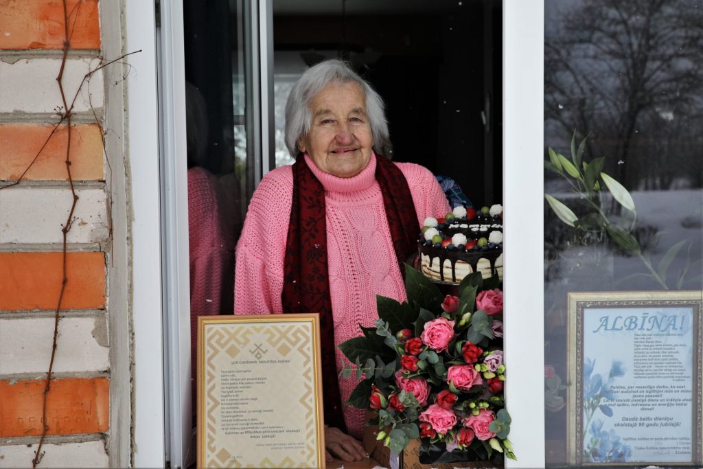 Sveicot Albīnas kundzi lielajā dzīves jubilejā, vēlam veselību, možu garu, Dieva svētību katrai dienai!