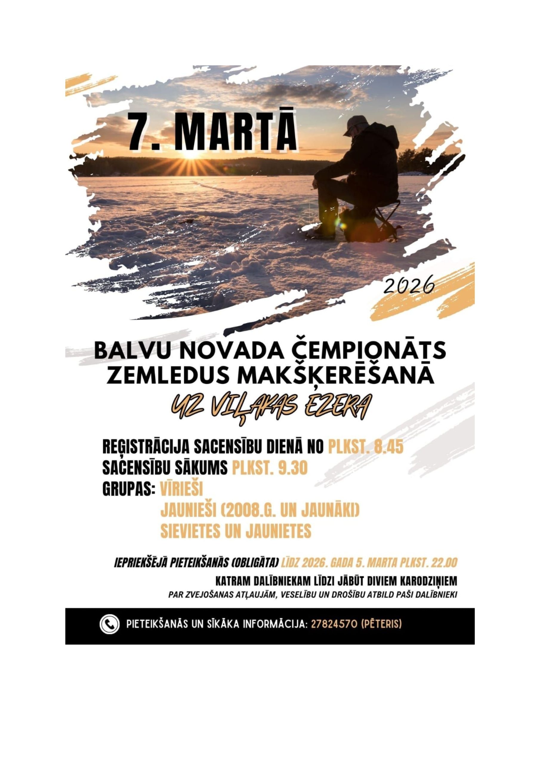 7.martā plkst.9.30 uz Viļakas ezera Balvu novada čempionāts zemledus makšķerēšanā.