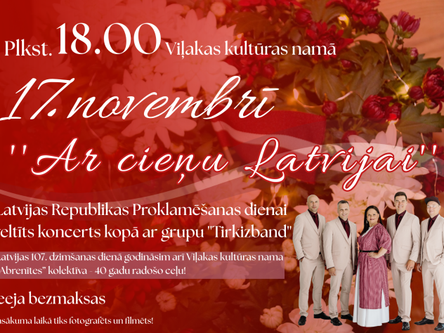 17.novembrī plkst.18.00 Viļakas kultūras namā Latvijas Republikas Proklamēšanas gadadienai veltīts pasākums kopā ar grupu ...