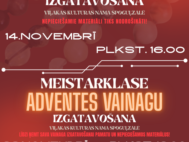 Aicinām piedalīties divās sirsnīgās un iedvesmojošās meistarklasēs Viļakas kultūras namā! 14. novembrī plkst. 16.00 ...