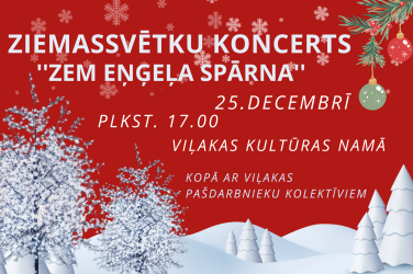 25.decembrī plkst.17.00 Viļakas kultūras namā Ziemassvētku koncerts “Zem eņģeļa spārna” kopā ar kultūras nama ...