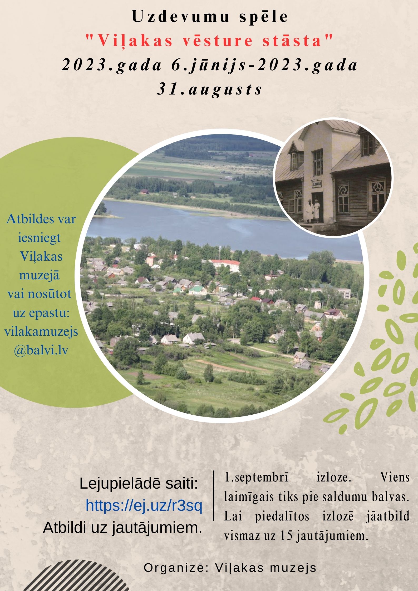 Uzdevumu atbildes var iesniegt Viļakas muzejā vai sūtot uz epastu: vilakamuzejs@balvi.lv, aizpildot pēdējo uzdevumu lapu.