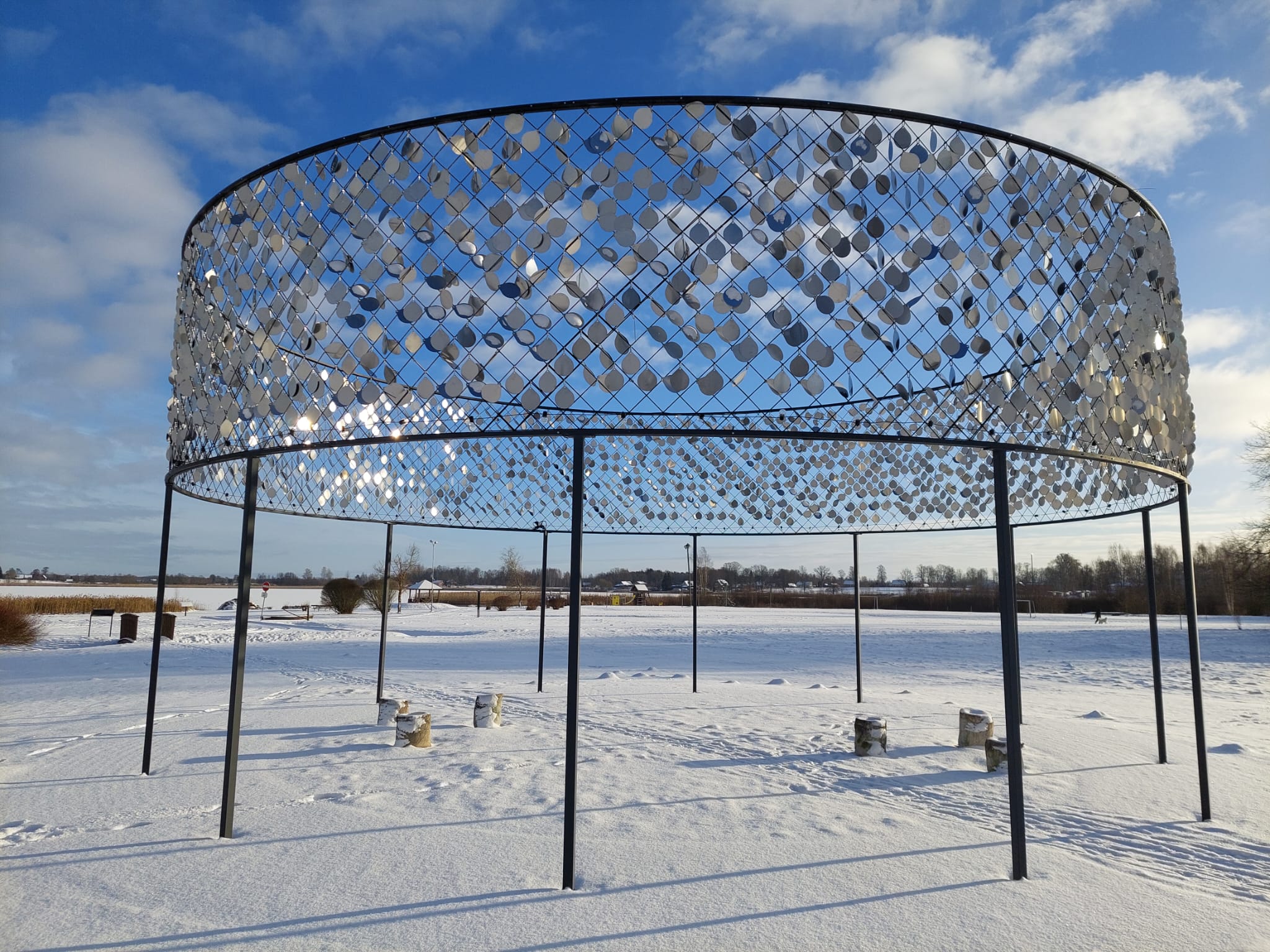 Pirms Ziemassvētkiem objekts tika atjaunots, veicot metāla sietu izgatavošanu, metināšana pie konstrukcijām, jaunu metāla gredzenu izgatavošanu, metāla lāsīšu frēzēšanu no Neobond un piestiprināšana ar gredzeniem pie konstrukcijām.