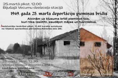 25.martā plkst. 12.00 bijušajā Vecumu dzelzceļa stacijā 1949.gada 25. marta deportāciju piemiņas brīdis. Aicinām ...